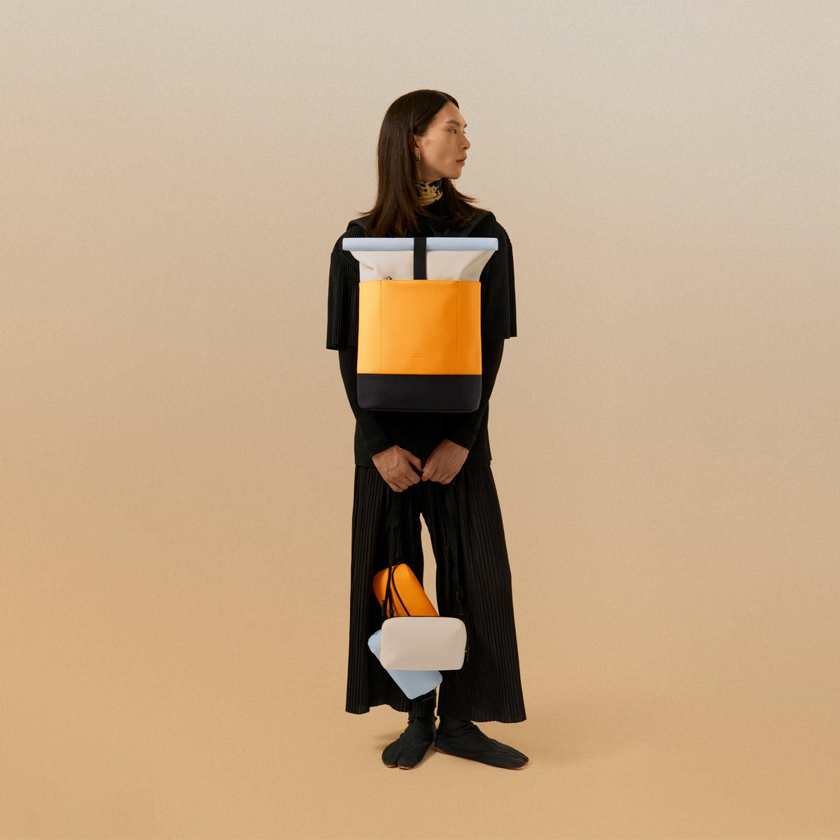 An urban classic with an iconic roll-top silhouette. Designed in Berlin, it has long been part of the cityscape of modern cities. With its clean form and smart features, the Hajo backpack is an essential companion for your everyday life. The timeless look is perfect for anyone who values minimalist aesthetics and everyday practicality.