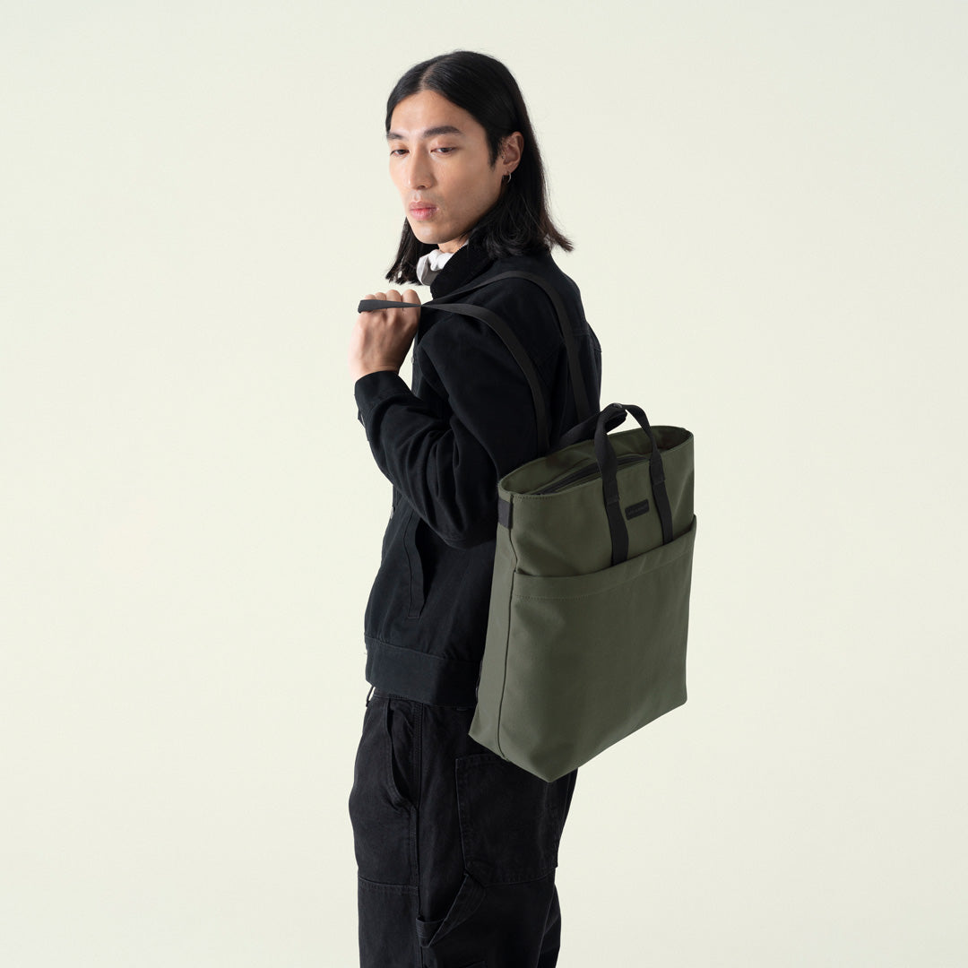 As flexible as your everyday life: Nolan is a tote and backpack in one. Whether carried in your hand, classically on your shoulder, or practically on your back, this multifunctional space miracle adapts to your style. The zipper protects the spacious interior, which has practical compartments for your smartphone, wallet and water bottle. And if you need a little more, a large outer pocket provides additional storage space.