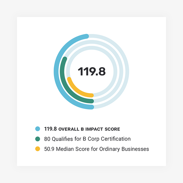 B Corp certification isn’t a trophy to put on a shelf, but it’s a responsibility. Every three years, we will be re-certified and the bar will be set even higher. That’s a challenge we welcome.