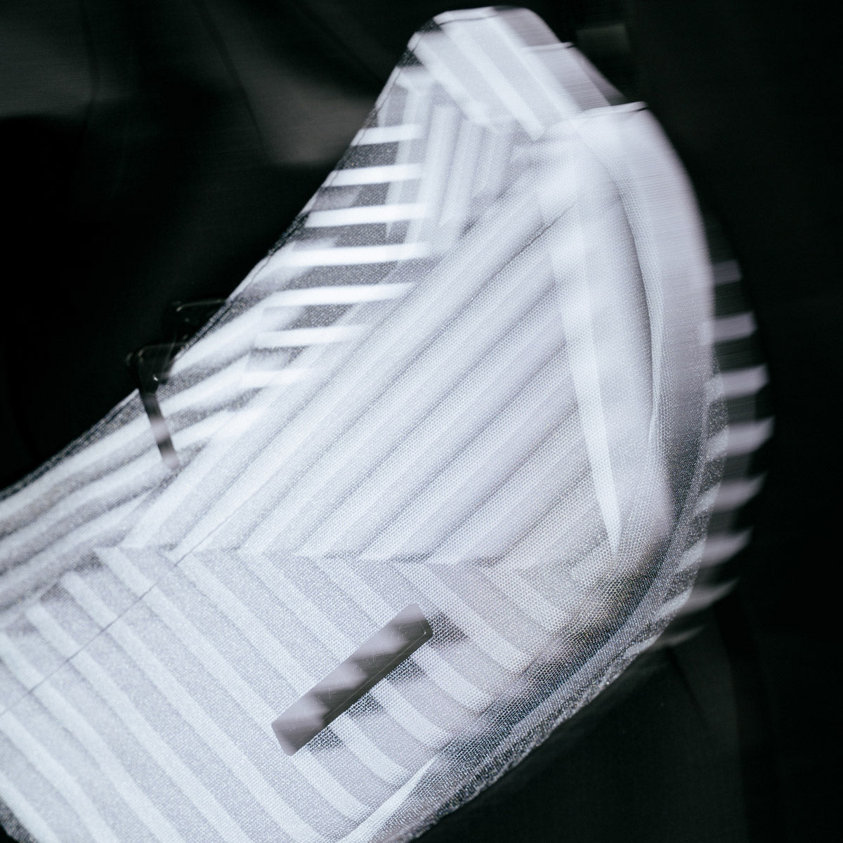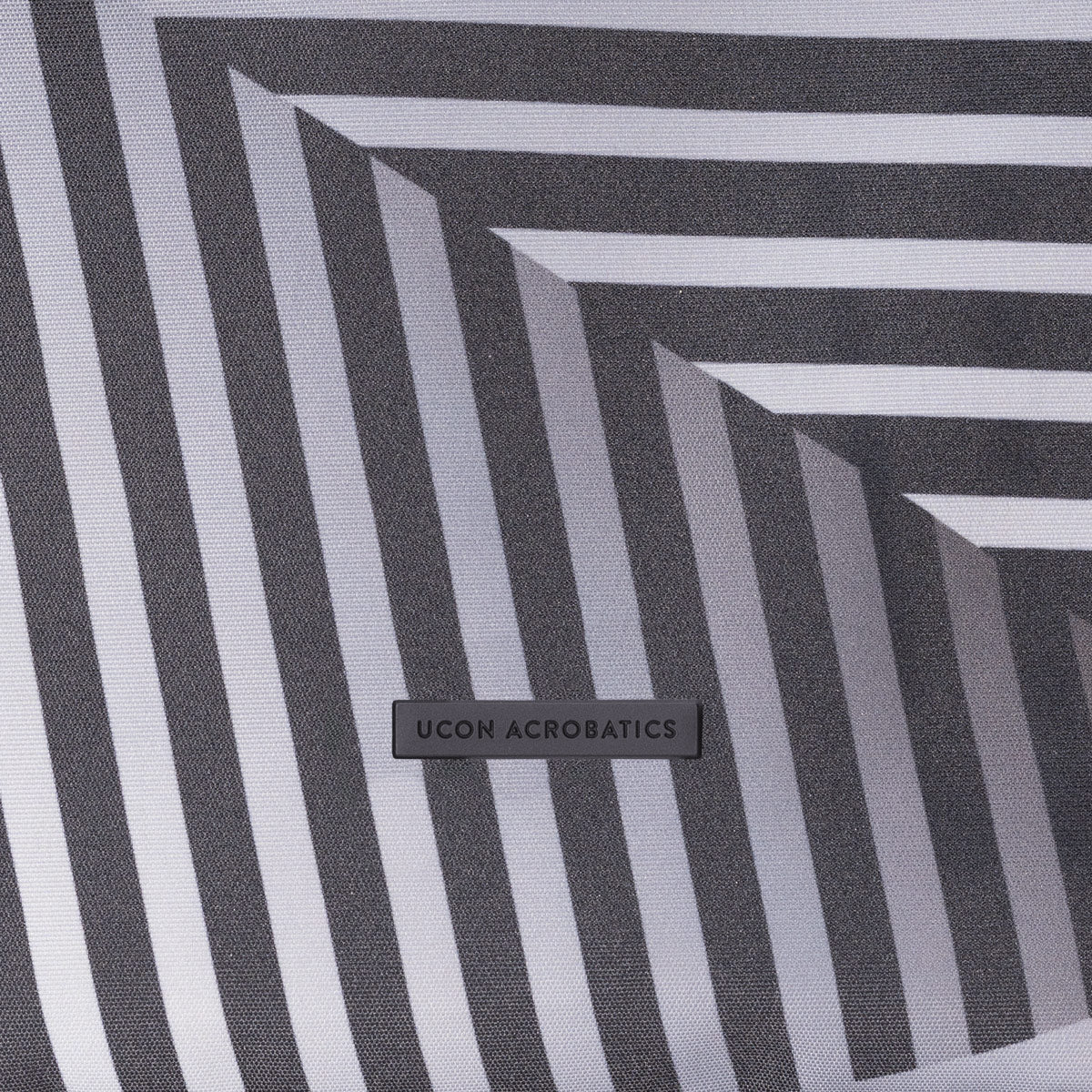Our specially developed main material reflects in the dark and sets new standards. It was made from recycled textiles, then printed using a high-resolution sublimation process and designed by one of our esteemed and talented designers. Fons Hickmann is a Berlin-based visual communication designer. His artwork for Ucon Acrobatics exemplifies a bold exploration of optical illusions and geometric abstraction. The design uses black-and-white striped patterns that intersect and overlap to create a mesmerizing, three-dimensional effect. The artwork has a strong "op art" influence, using high-contrast lines and shapes that seem to shift and pulsate as you look at them.