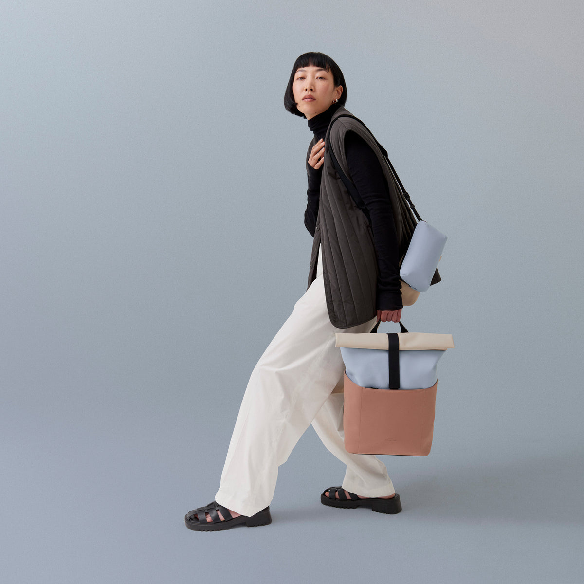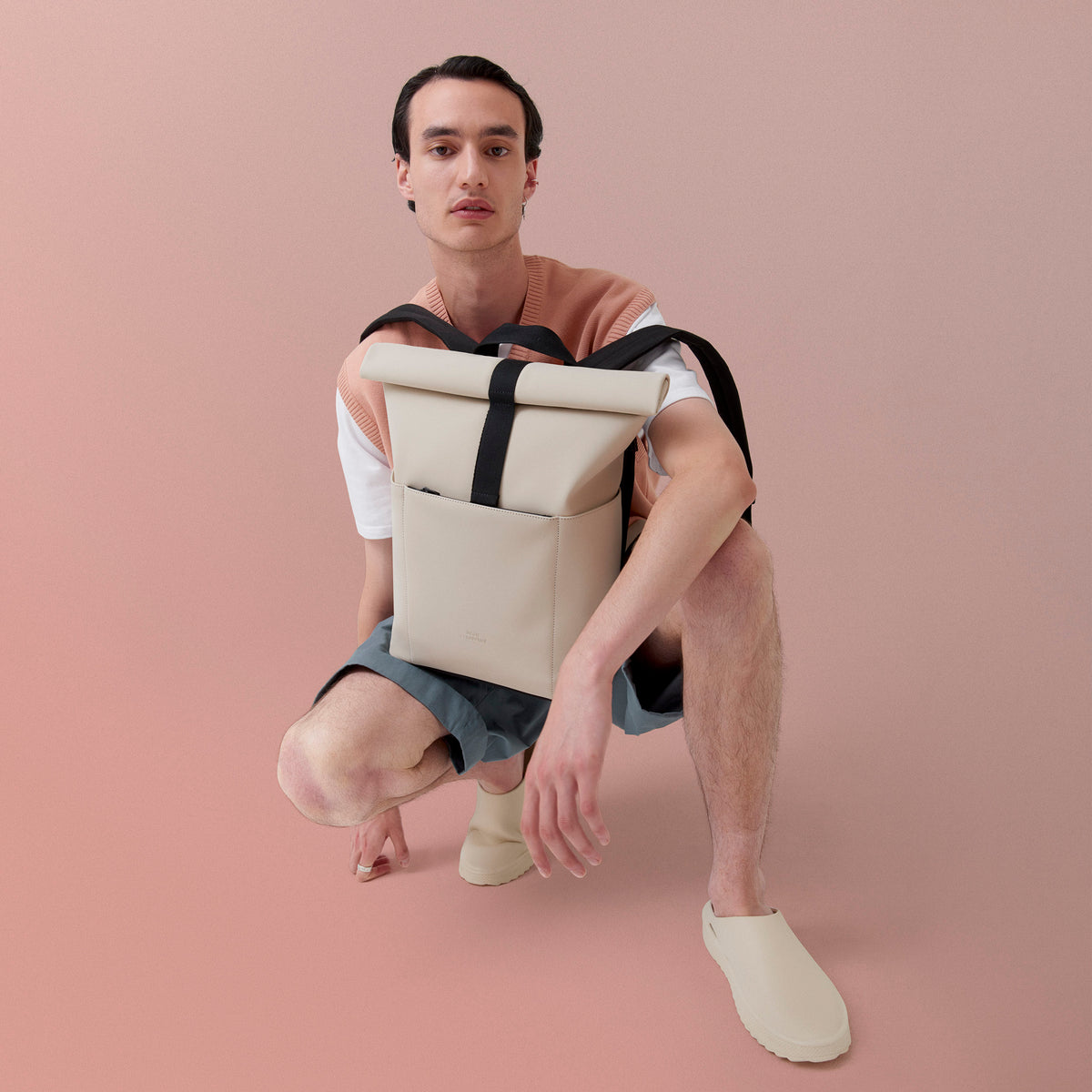 An urban classic with an iconic roll-top silhouette. Designed in Berlin, it has long been part of the cityscape of modern cities. With its clean form and smart features, the Hajo backpack is an essential companion for your everyday life. The timeless look is perfect for anyone who values minimalist aesthetics and everyday practicality.