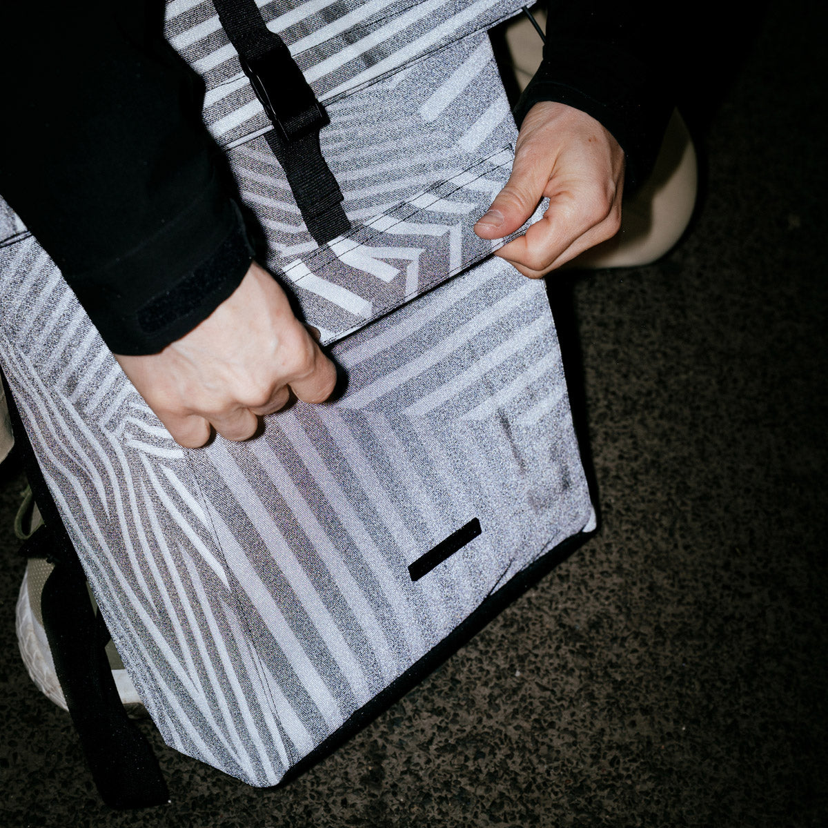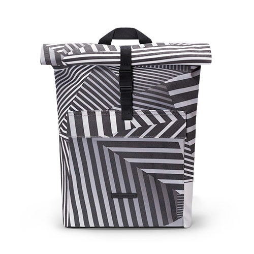 Our specially developed main material reflects in the dark and sets new standards. It was made from recycled textiles, then printed using a high-resolution sublimation process and designed by one of our esteemed and talented designers. Fons Hickmann is a Berlin-based visual communication designer. His artwork for Ucon Acrobatics exemplifies a bold exploration of optical illusions and geometric abstraction. The design uses black-and-white striped patterns that intersect and overlap to create a mesmerizing, three-dimensional effect. The artwork has a strong "op art" influence, using high-contrast lines and shapes that seem to shift and pulsate as you look at them.