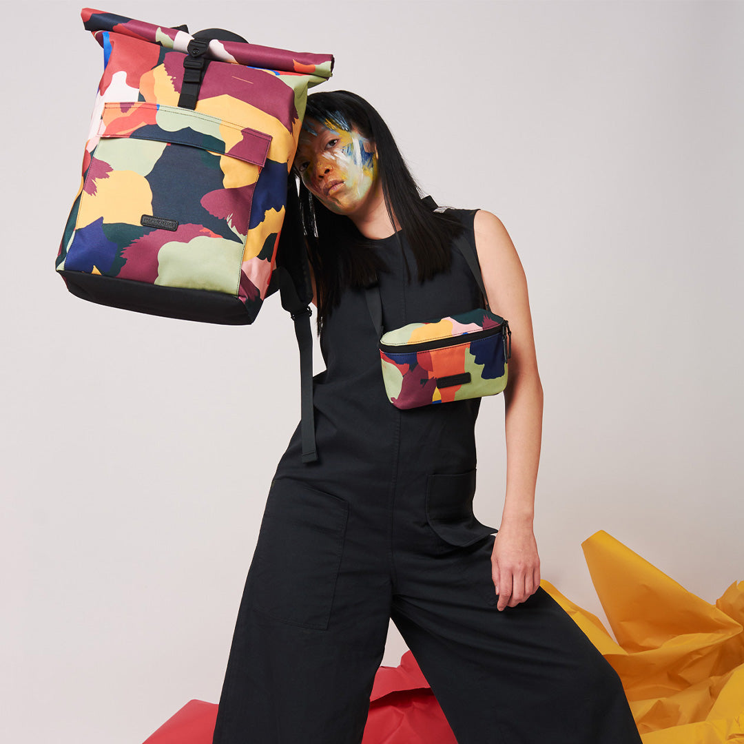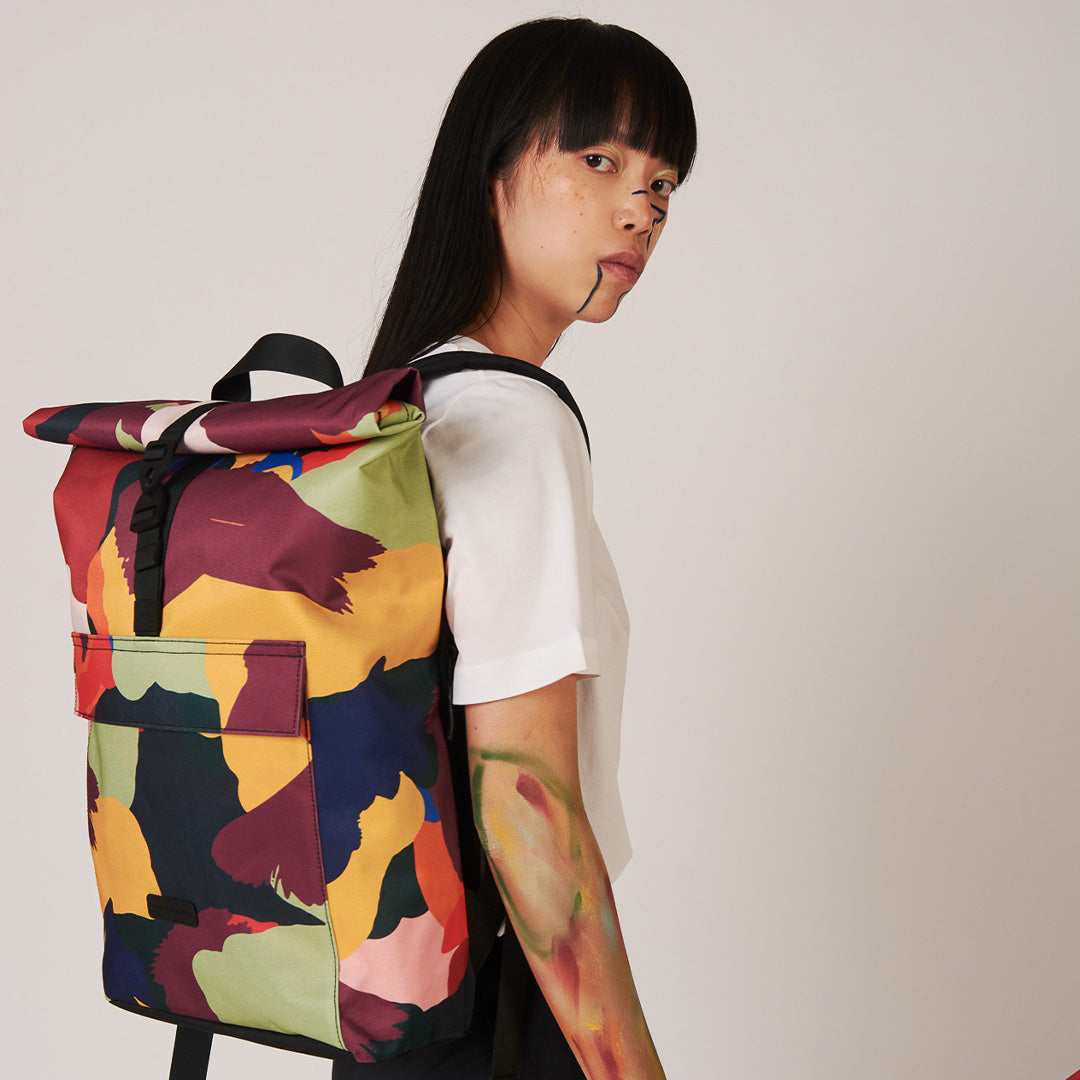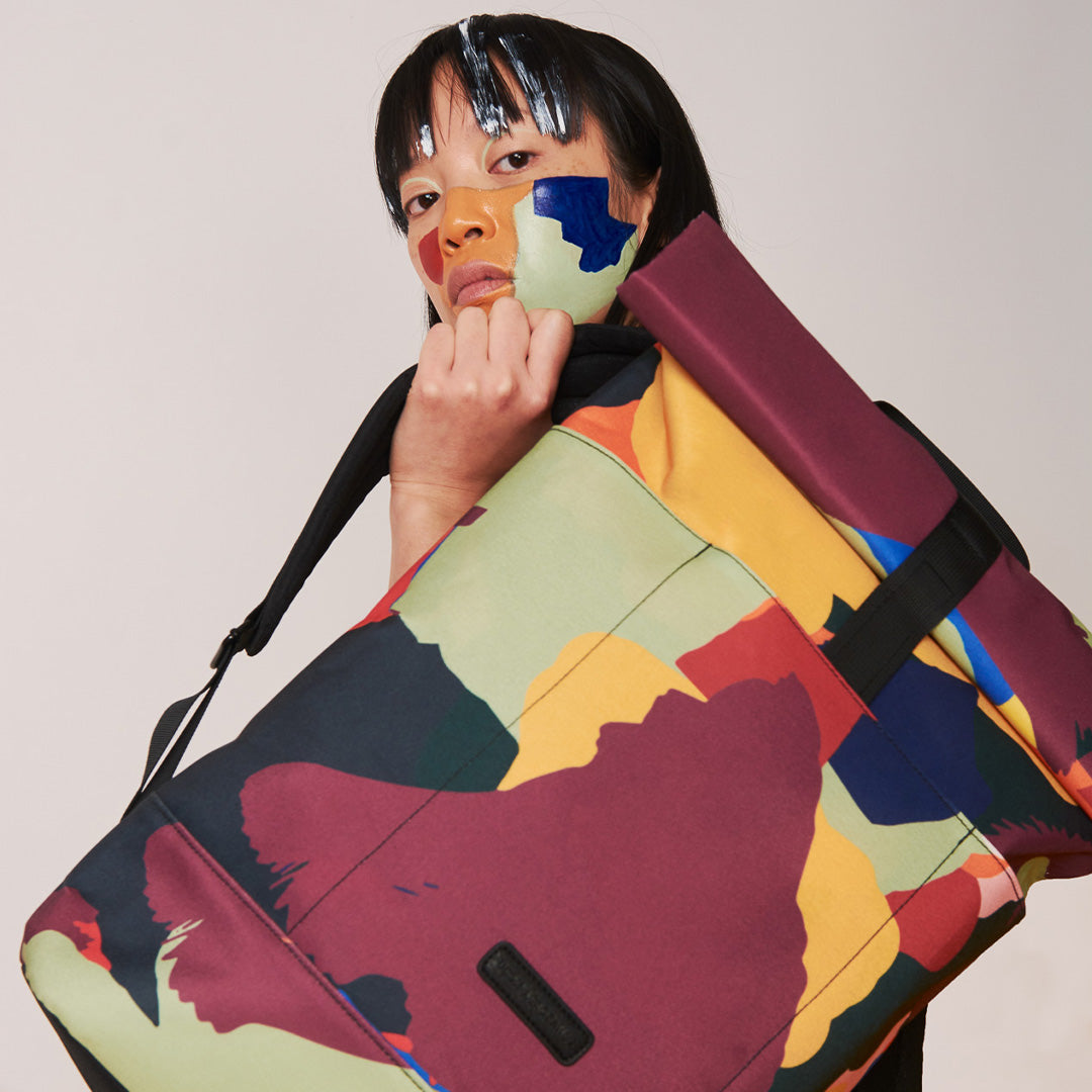 The main material is printed using a high-resolution sublimation process, designed by one of our most favourite and talented artists. Leif Podhajsky is a Berlin-based visual artist. His artwork for Ucon Acrobatics is reminiscent of psychedelic landscapes, with swirling patterns that evoke a sense of fluid motion. Vibrant colors blend into mesmerizing, wave-like forms. This piece feels both organic and surreal, capturing the essence of nature through a modern, abstract lens. It creates an immersive visual experience that combines natural elements with a contemporary, almost hypnotic aesthetic.