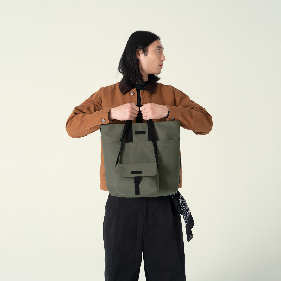 Minimalist and elegant at the same time, this tote bag impresses with its reduction to the essentials. Noah Bag is a minimalist shoulder bag for everyday needs, such as shopping or a trip to the park. Two outer pockets offer additional storage space if there is not enough room inside.